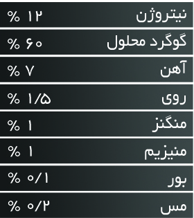 دز مصرف پیشنهادی : محلول پاشی 6-4 کیلوگرم در 1000 لیتر آب – کودآبیاری 20-10 کیلوگرم در هکتار