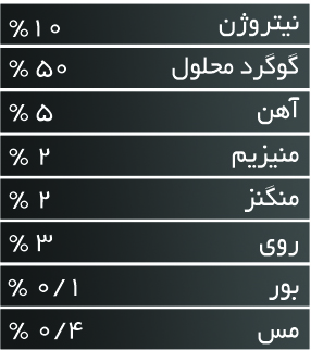 دز مصرف پیشنهادی : محلول پاشی 6-4 کیلوگرم در 1000 لیتر آب – کودآبیاری 20-10 کیلوگرم در هکتار