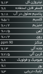 دز مصرف پیشنهادی : محلول پاشی 3-2 لیتر در 1000 لیتر آب – کودآبیاری 20-10 لیتر در هکتار