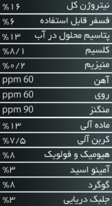 دز مصرف پیشنهادی : محلول پاشی 3-2 لیتر در 1000 لیتر آب – کودآبیاری 20-10 لیتر در هکتار